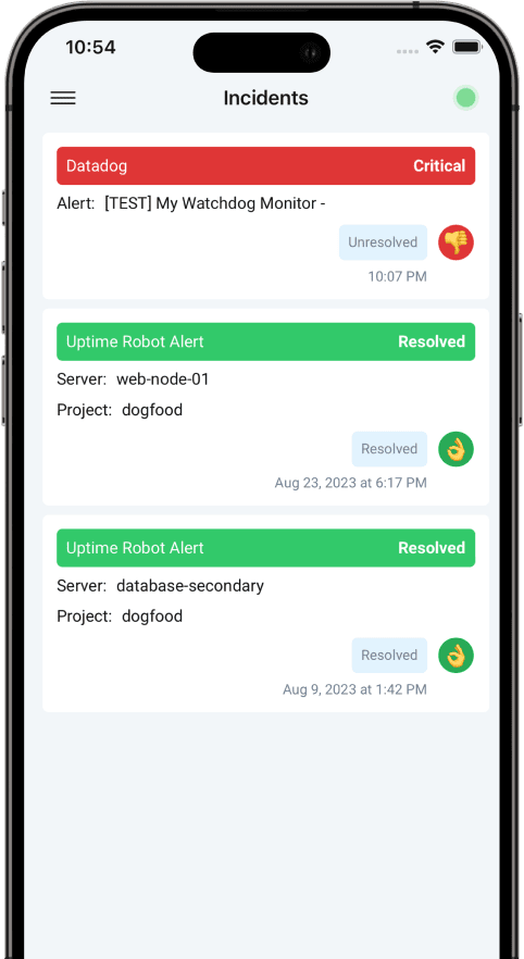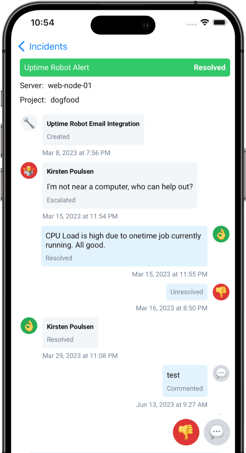 - Actionable push notifications. All incidents now have buttons to resolve, unresolve, comment, and escalate to higher groups, even on the lock screen.