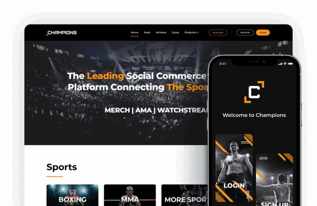 Champions came to us with an idea to create and sell merch for middle-segment sportsmen. Thus, our task was to find an optimal tech solution for e-commerce. After we did that, our team also added a live streaming feature. Since streaming services need constant support, it was a real challenge to our team to create one.