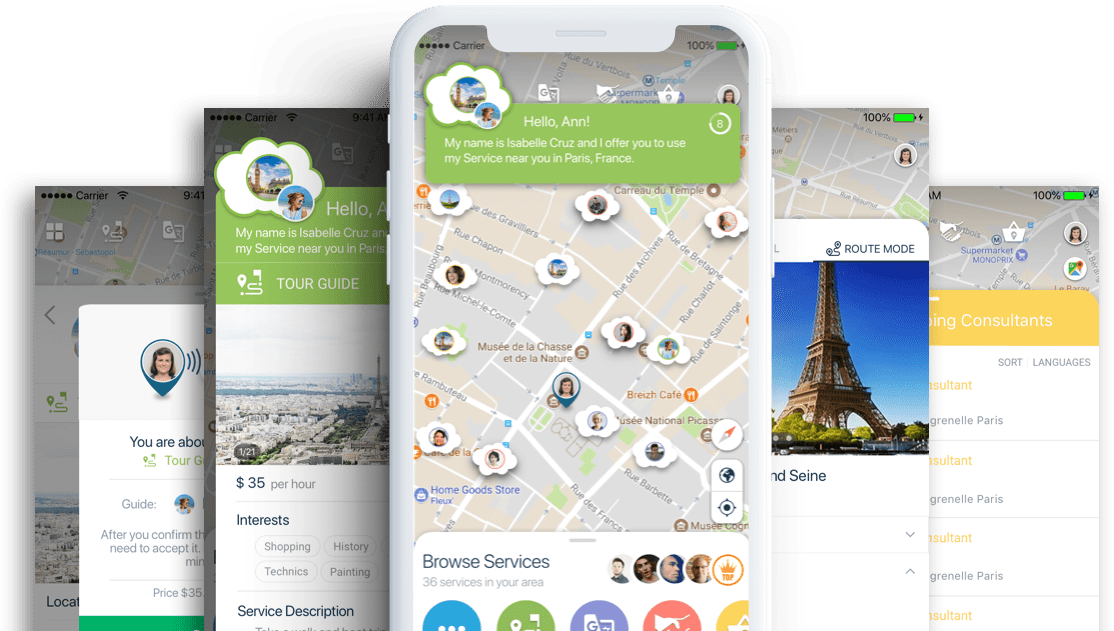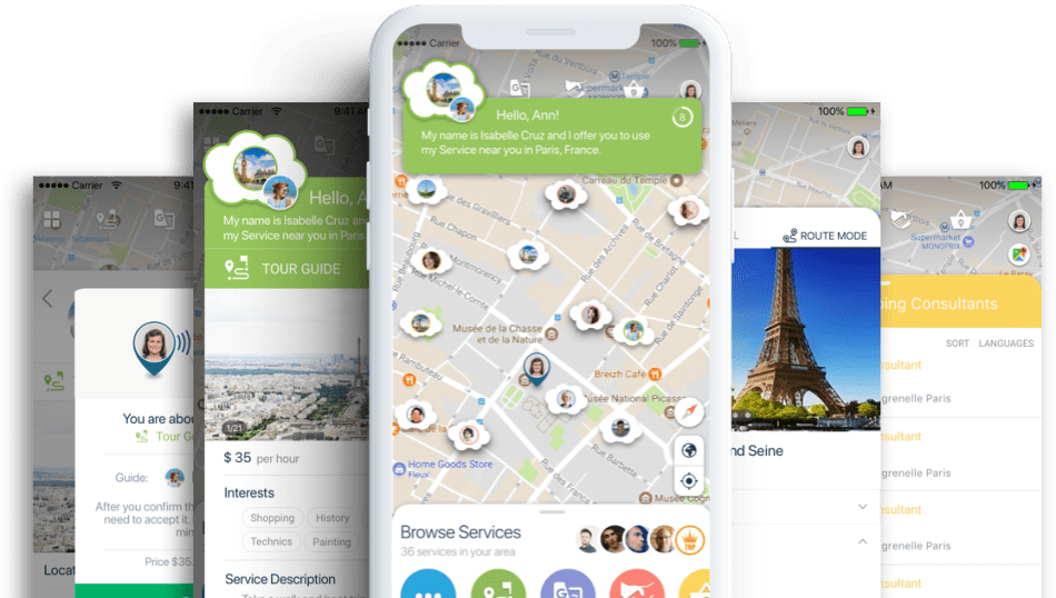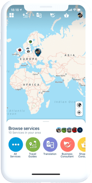 - The mobile app shows travelers all available service providers on the map based on geolocation. Users are free to choose anyone with whom to chat with
